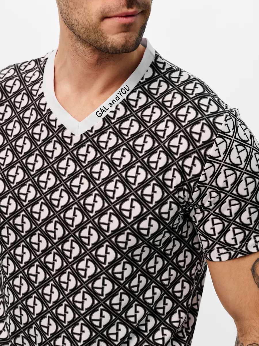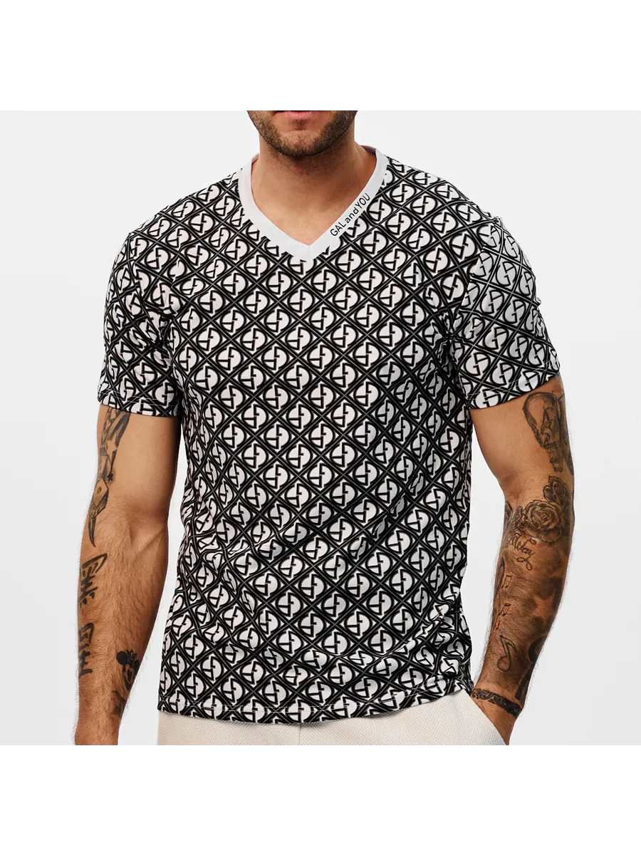 Мужская футболка — это стильная и универсальная вещь, которая станет отличным дополнением к любому гардеробу. Она подойдёт как для повседневной носки, так и для вечеринок или отдыха. Футболка выполнена из качественного материала, который обеспечивает комфорт и свободу движений. V-образный вырез воротника придаёт модели элегантный и стильный вид, а также позволяет сочетать футболку с различными аксессуарами. Эта футболка идеально подойдёт для создания разнообразных образов. В ней можно отправиться на прогулку с друзьями, посетить вечеринку или просто отдохнуть дома. Благодаря своему универсальному дизайну, она легко сочетается с джинсами, брюками или шортами. Мужская футболка с V-образным вырезом станет незаменимым элементом вашего гардероба. Она поможет создать стильные и модные образы, которые подчеркнут вашу индивидуальность и хороший вкус.