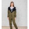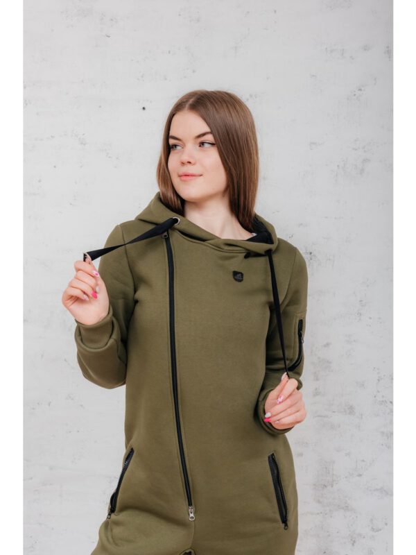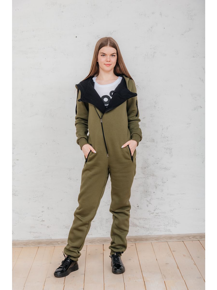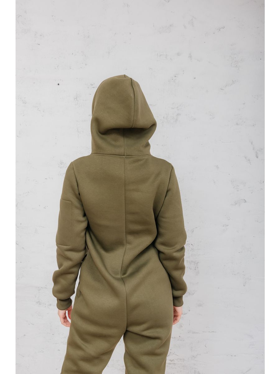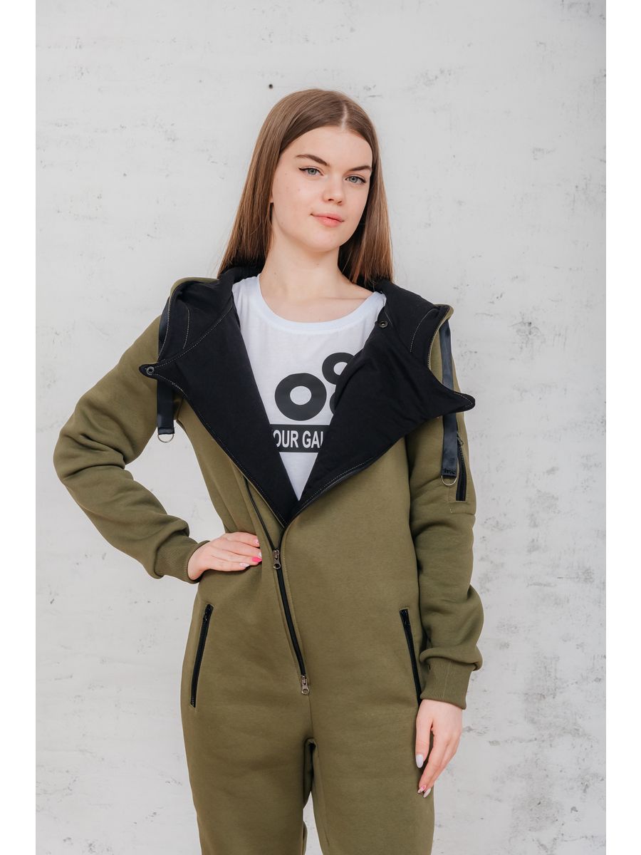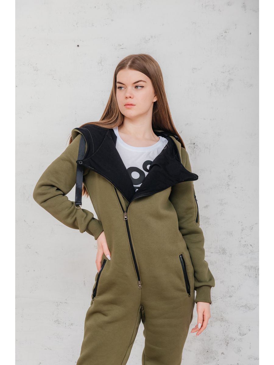 Утепленный женский комбинезон из плотного трикотажа с начесом. Универсальный повседневный комбинезон для прогулок, путешествий, спорта и активного отдыха. Комбинезон мужской выгодно сочетается с верхней одеждой, его можно носить с жилетами, куртками, пуховиками, парками. Объемный стильный капюшон хорошо защищает голову и шею от ветра. Для хранения важных мелочей комбинезон имеет три кармана на молнии, два глубоких на бедрах и один на рукаве. Особое внимание стоит обратить на дизайнерские элементы комбинезона: фирменная нашивка на груди, косая молния