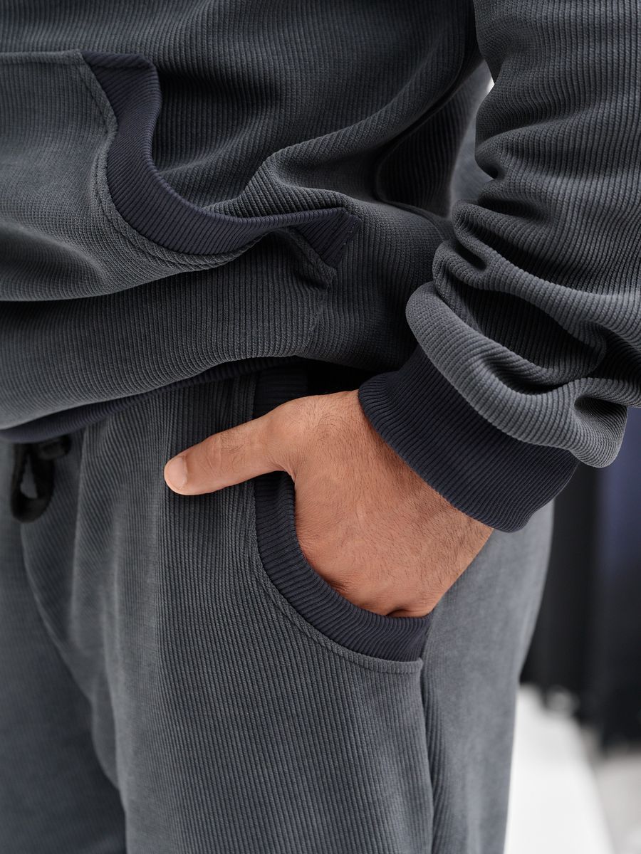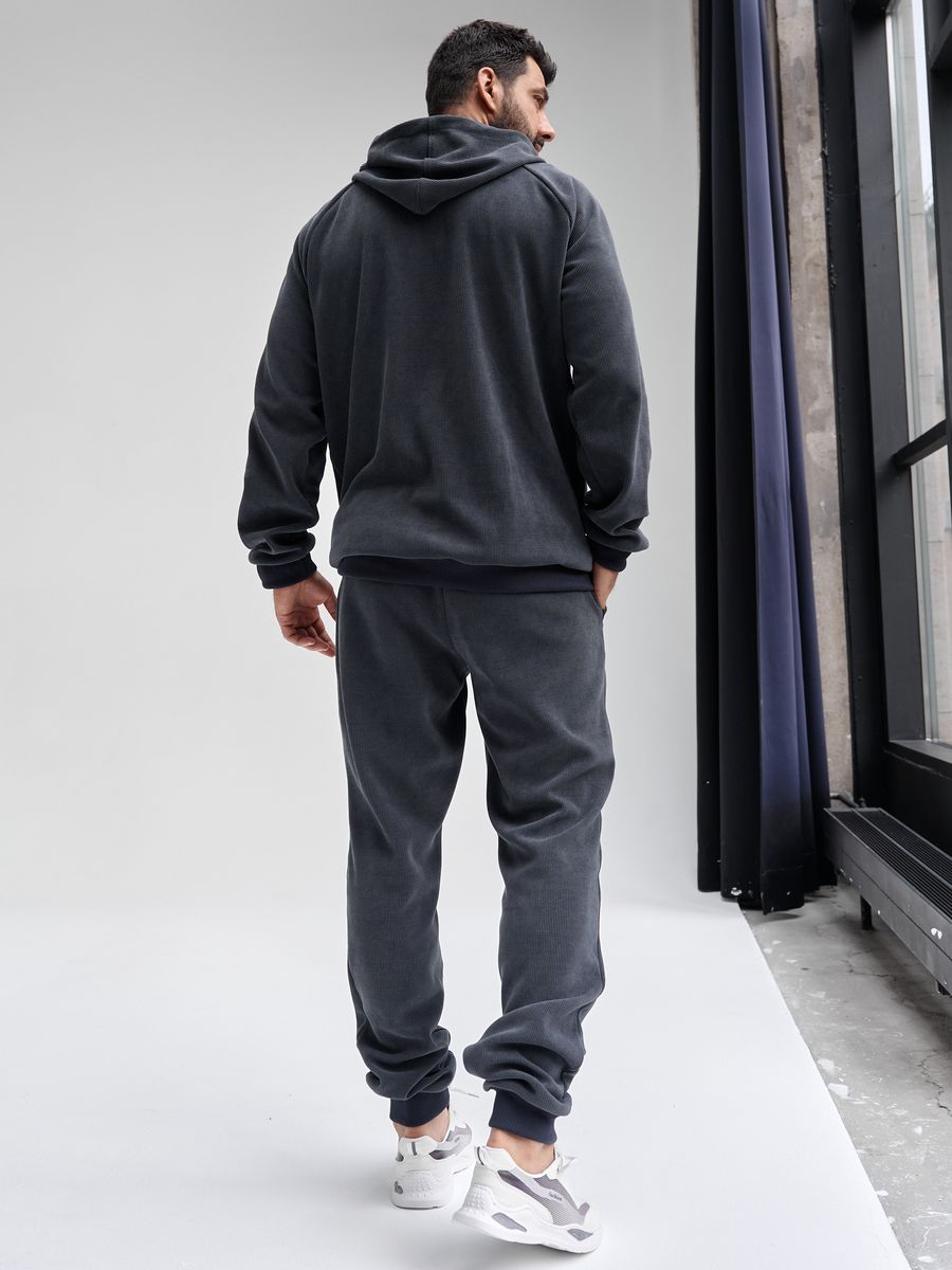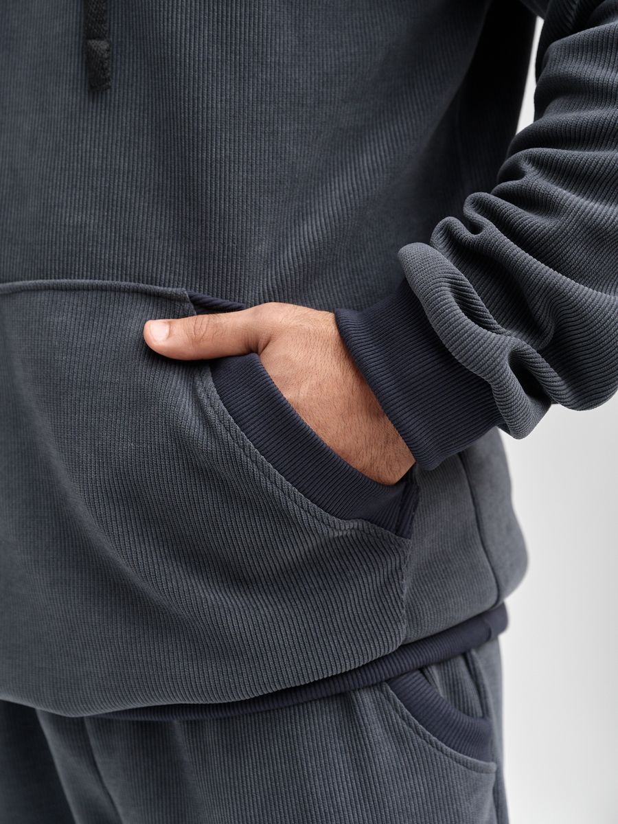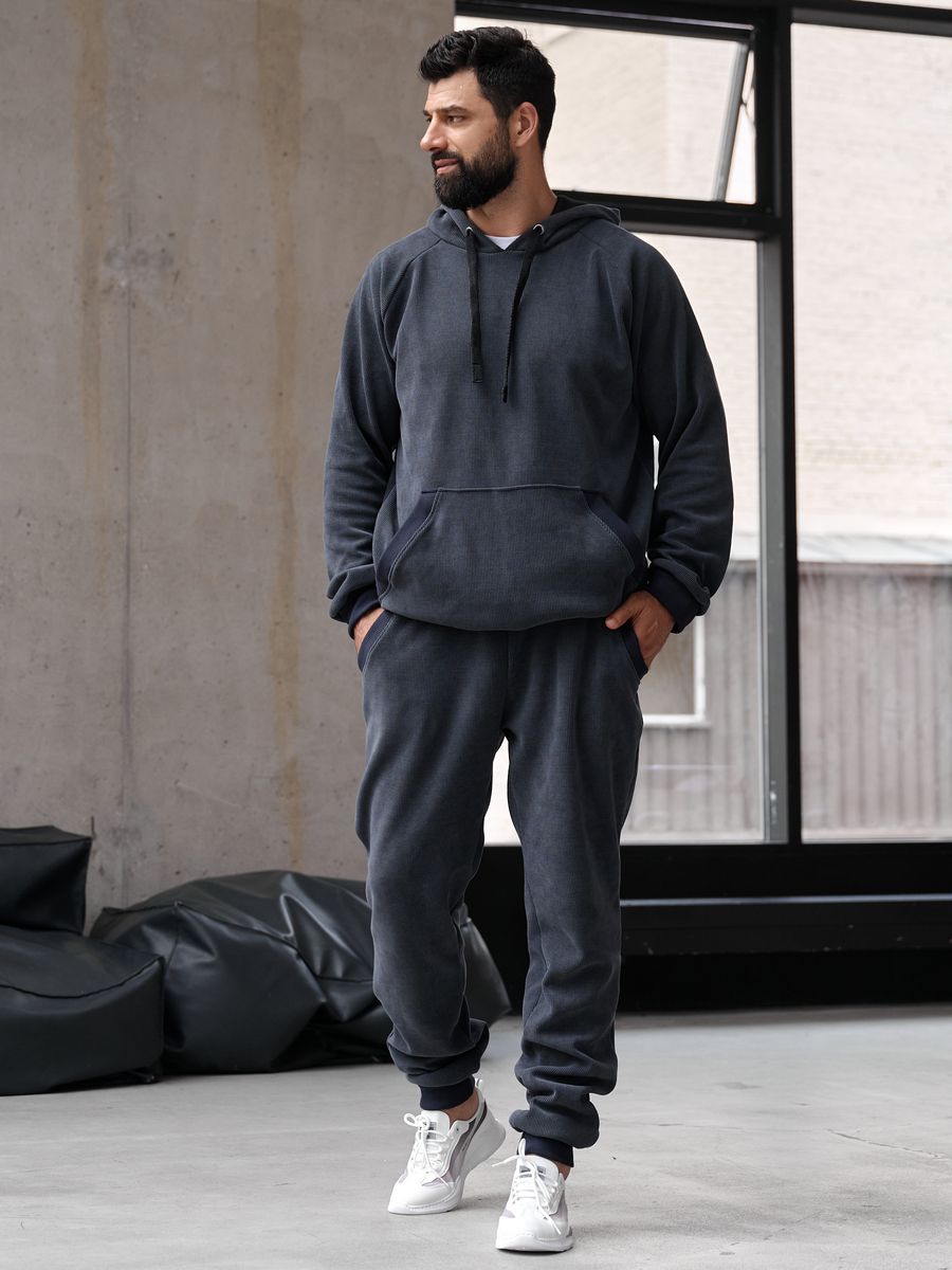 Спортивный костюм из новой на рынке итальянской ткани- рельефный вельвет. Костюм состоит из толстовки-худи свободного кроя и спортивных брюк. Этот костюм станет любимым в вашем гардеробе, потому что костюм не оставляет ворса на одежде, что часто происходит с изделиями из футером, не мнется, идеален в посадке на фигуру. Ткань заслуживает особого внимания очень приятная, теплая и стильная и при этом очень легкая в обслуживании: легко стирается не выцветает, не мнется. Классические и очень удобные боковые карманы с обтачкой на брюках и карманом-Кенгуру на толстовке, делает образ свободным и не принужденным. Мелочей в наших костюмах не бывает, поэтому подкладочная сетка на капюшоне. Летом в костюме очень комфортно на вечерних прогулках, а весной и осенью можете одеть его поверх футболки и наслаждаться комфортом и теплом. Зимой под куртку и теплую обувь и Вы опять на стиле и в комфорте. Прекрасный подарок мужчине и подростку. Получайте удовольствие от покупки и носите с удовольствием! Бренд Your Galaktika работает для Вас!