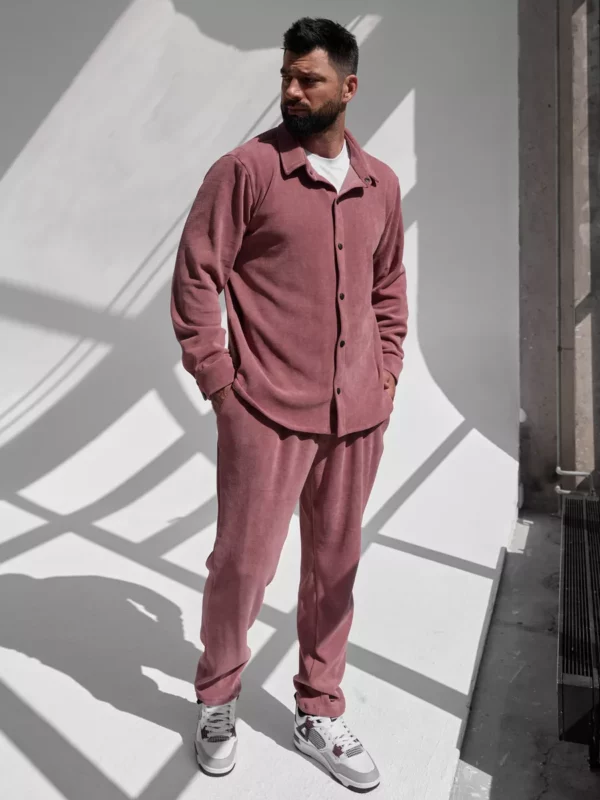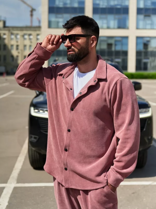 Костюм сшит из новой на рынке итальянской ткани- рельефный вельвет. Костюм состоит из рубашки на кнопках свободного кроя и спортивных брюк на регулируемой резинке понизу. Ничего комфортнее и при этой удобнее у Вас еще нет! Костюм не мнется с идеальной посадкой, сшит из ткани премиум класса, которая не требует особого ухода, И еще… костюм не оставляет ворса на одежде, что часто происходит с изделиями из футера. Ткань очень приятная, теплая и стильная и при этом очень легкая в обслуживании: легко стирается не выцветает, не мнется. Классические и очень удобные боковые карманы на брюках. Летом в ней очень комфортно на вечерних прогулках, а весной и осенью можете одеть его поверх футболки ил рубашки и наслаждаться комфортом и теплом. Зимой под куртку и теплую обувь и Вы опять на стиле и в комфорте. Прекрасный подарок мужчине и подростку. Получайте удовольствие от покупки и носите с удовольствием! Бренд Your Galaktika работает для Вас!