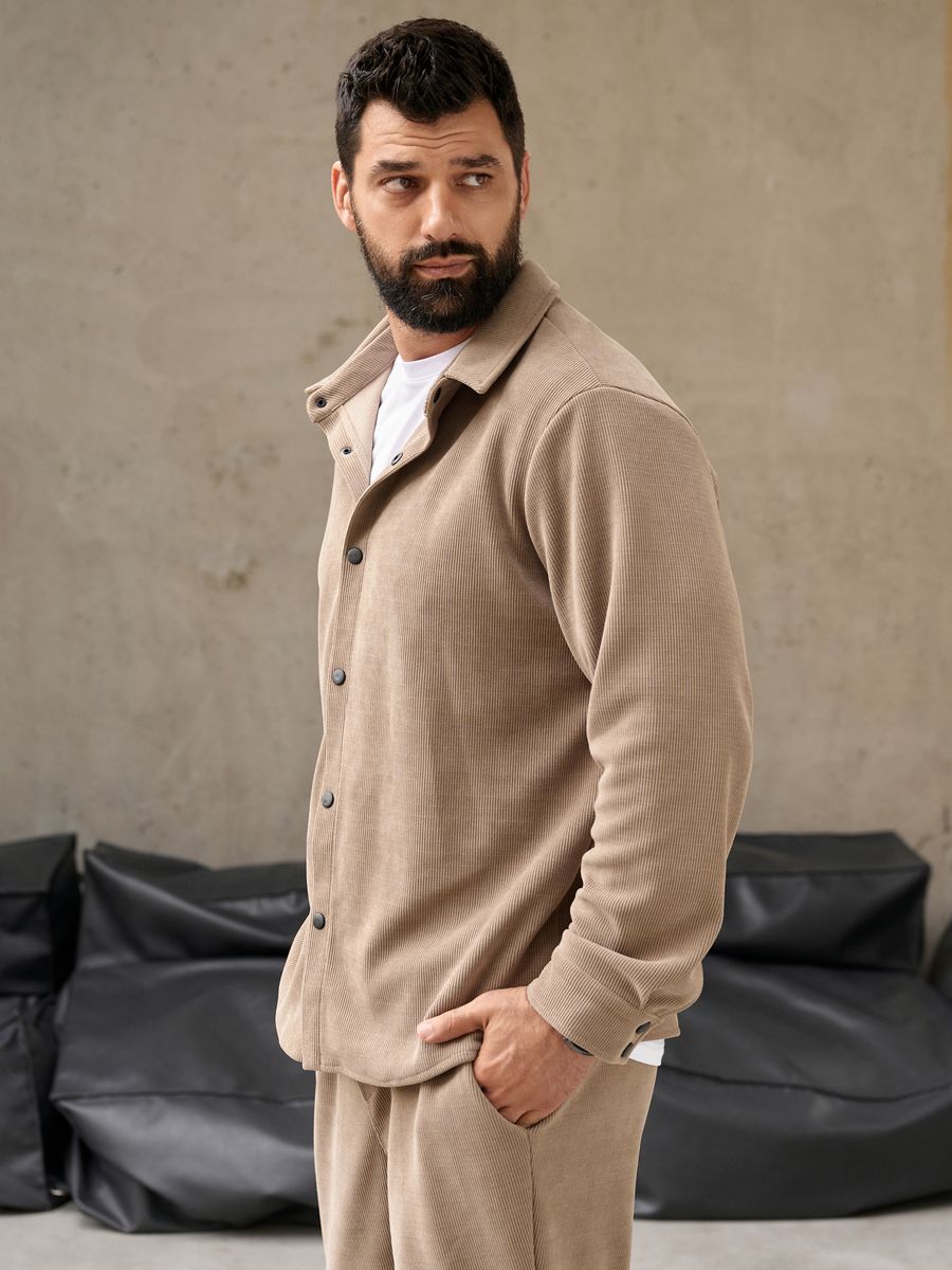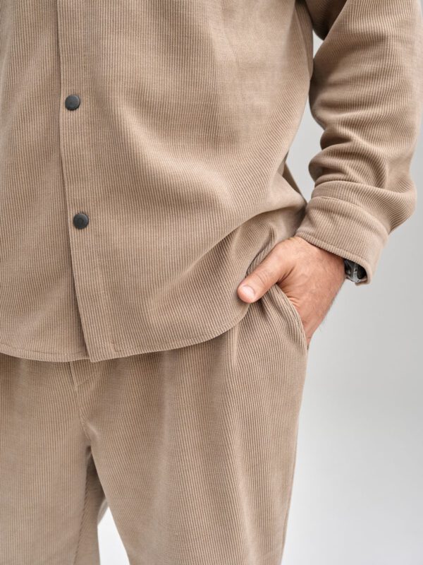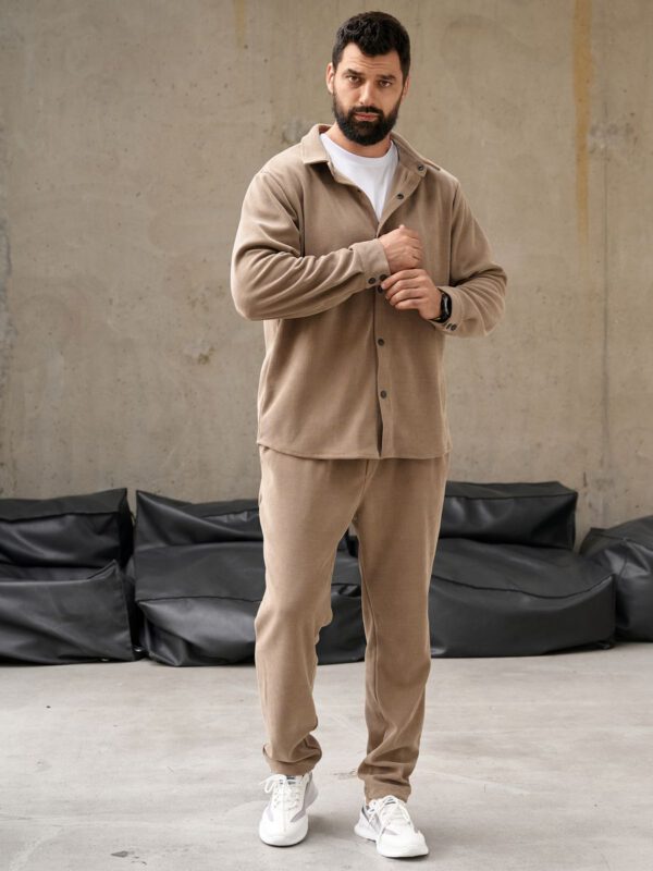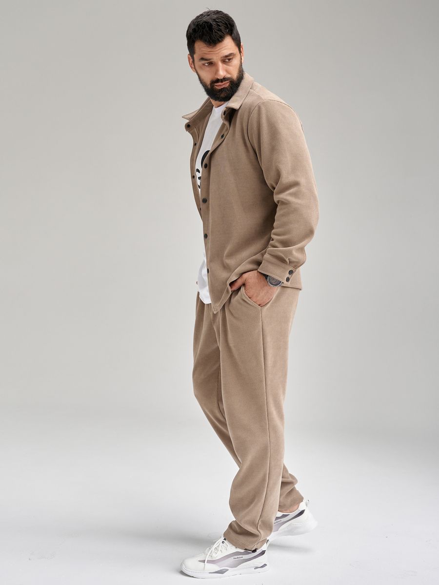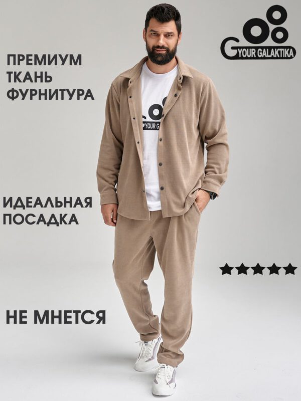 Костюм сшит из новой на рынке итальянской ткани- рельефный вельвет. Костюм состоит из рубашки на кнопках свободного кроя и спортивных брюк на регулируемой резинке понизу. Ничего комфортнее и при этой удобнее у Вас еще нет! Костюм не мнется с идеальной посадкой, сшит из ткани премиум класса, которая не требует особого ухода, И еще… костюм не оставляет ворса на одежде, что часто происходит с изделиями из футера. Ткань очень приятная, теплая и стильная и при этом очень легкая в обслуживании: легко стирается не выцветает, не мнется. Классические и очень удобные боковые карманы на брюках. Летом в ней очень комфортно на вечерних прогулках, а весной и осенью можете одеть его поверх футболки ил рубашки и наслаждаться комфортом и теплом. Зимой под куртку и теплую обувь и Вы опять на стиле и в комфорте. Прекрасный подарок мужчине и подростку. Получайте удовольствие от покупки и носите с удовольствием! Бренд Your Galaktika работает для Вас!