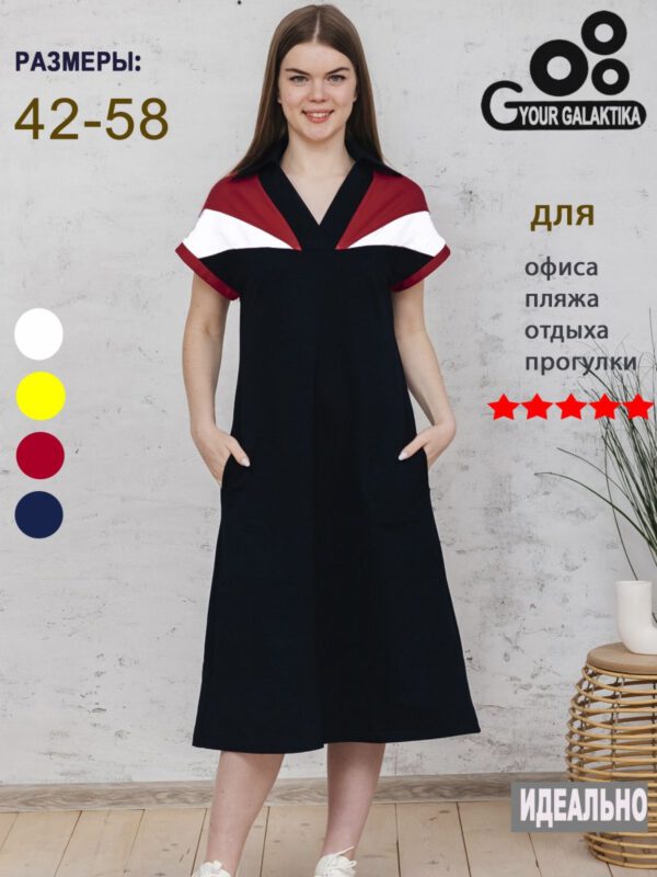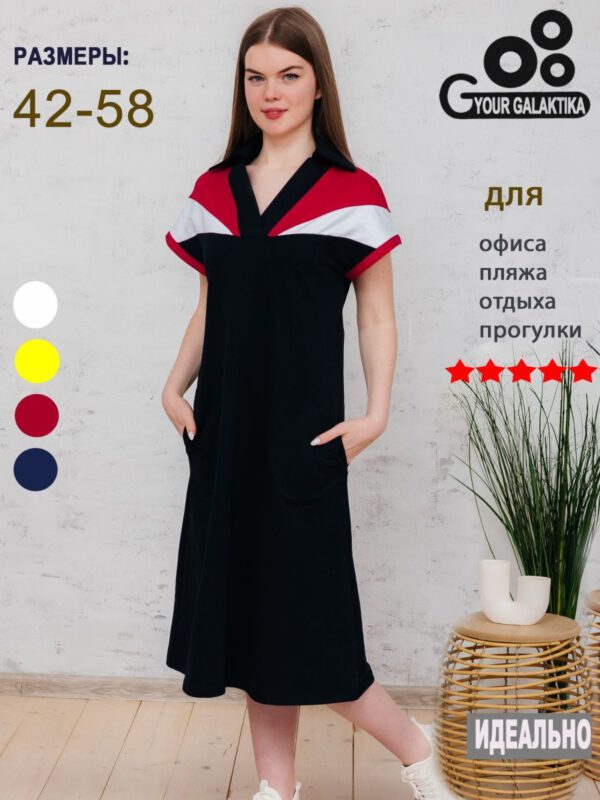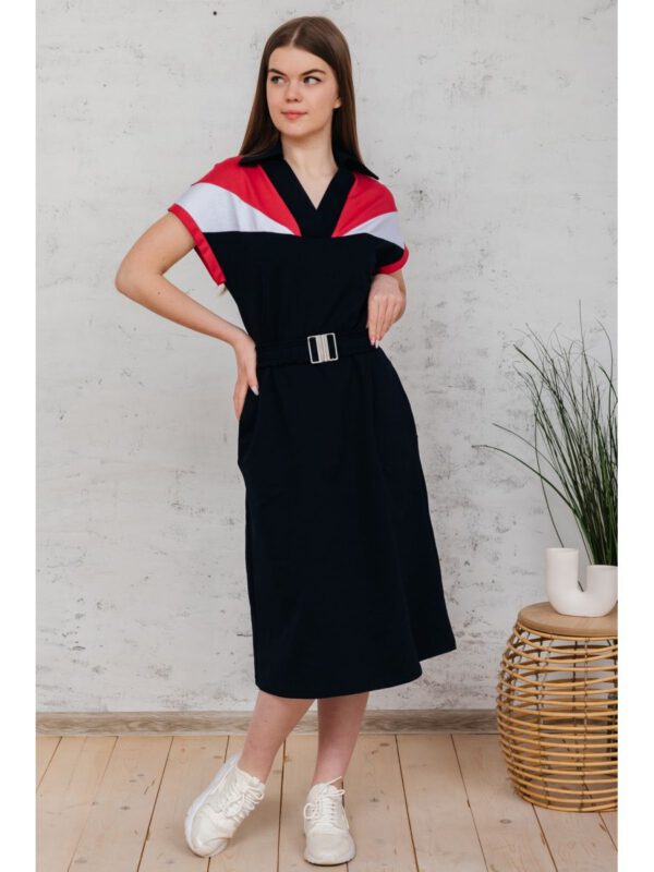 Стильное легкое платье на каждый день. Свободный крой даст Вам свободу движения, а натуральные ткани создадут атмосферу абсолютного комфорта. Яркие и трендовые сочетания цветов позволят Вам всегда быть на высоте. Пояс продается отдельно.