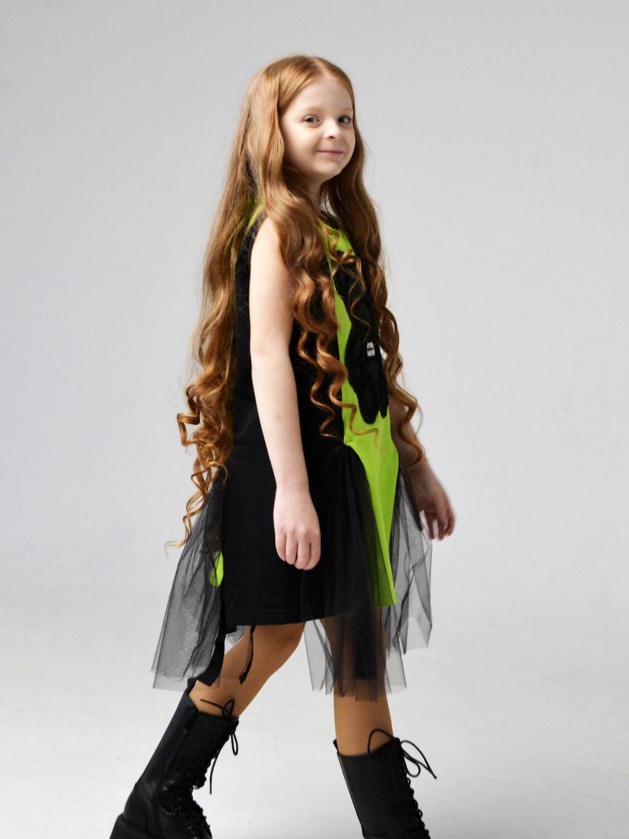 Стильное современное нарядное платье для девочки. Платье сшито из турецкого трикотажа со вставками из еврофатина. Уникальный смелый дизайн этого платье позволить Вашей красиваце быть самой красивой и интересной на мероприятии. Поводов продемонстрировать данный наряд может быть масса: день рождение, дискотека, вечеринка, чаепитие, новый год, встреча с подружками и просто поход по магазинам и игровым центрам. Будьте смелыми, красивыми и интересными! Носите вещи нашего бренда долго и с удовольствием!
