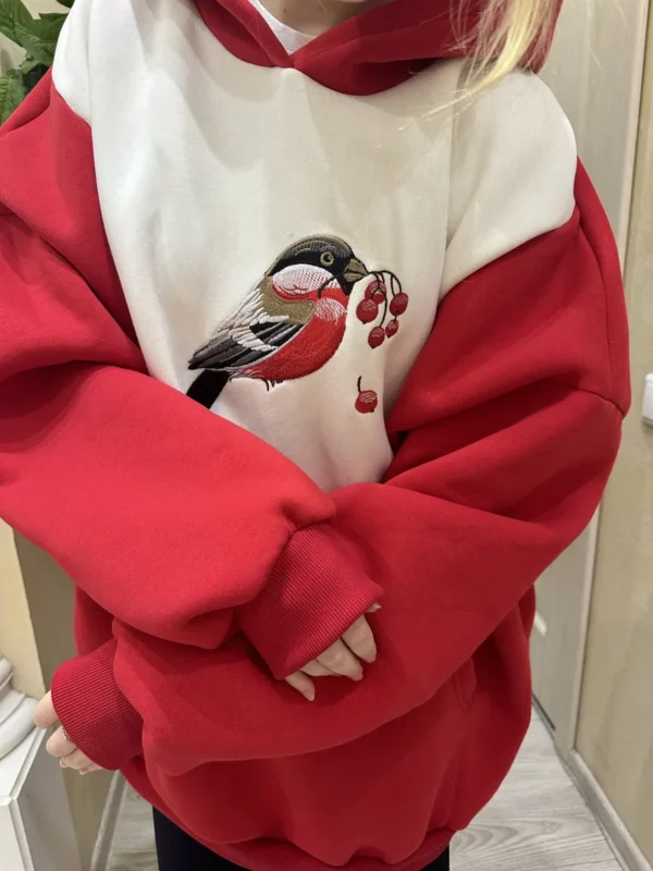 Шикарная теплая толстовка из футера 3-нитки премиум качества с начесом. Будет Вас согревать и радовать каждый раз когда Вы ее одеваете. На толстовке качественная яркая вышивка снегиря и большой удобный карман. Толстовка является шикарным подарком для себя и наших близких. Удачных Вам покупок! Носите долго и с удовольствием!