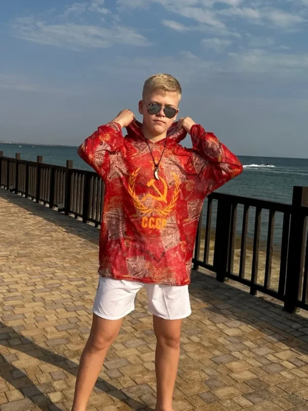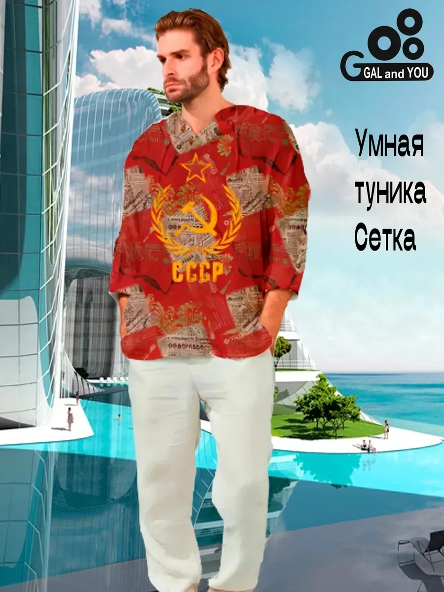 Пляжная туника-рубашка от Gal and You станет незаменимым спутником на отдыхе. Эта стильная и удобная модель выполнена из дышащего материала, который обеспечивает комфорт даже в самый жаркий день. Свободный покрой не сковывает движений, а V-образный вырез горловины придает тунике легкий и непринужденный вид. Яркий красный цвет с принтом СССР добавит вашему образу индивидуальности. Эта пляжная туника легко сочетается с любыми купальными костюмами, создавая стильный и комфортный образ. Благодаря SPF 30, она защитит вашу кожу от вредного воздействия солнечных лучей.